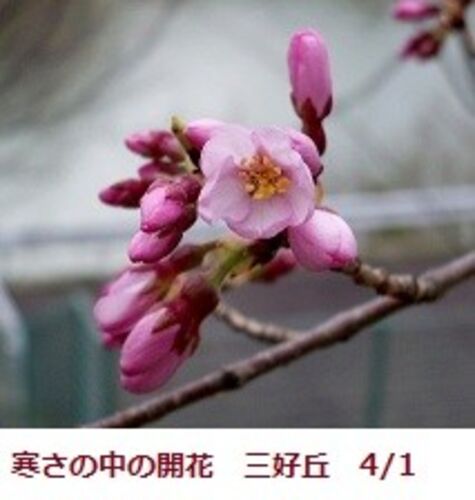 きょうから4月と言うのに寒風の中照ったり曇ったりで冬のような寒さの一日。四つ池の周囲を一回りして桜の開花状況をウォッチ。いずれも蕾が固い。西側斜面にある数本の内1本だけが蕾がほころび始めた。この斜面は北西の風をさえぎっているので比較的早い…