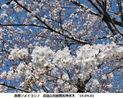 平成最後の月、4月の1日。字面だと”陽春”の印象を受けるが、現実は冬型の気圧配置で空は青いが、風が冷たい。東京では桜が満開だけれど、わが三好丘ではまだ二・三分咲きだ。日記で調べると、わが家のすぐ下の四つ池では、昨18年は3月25日開花、28日満開。一…